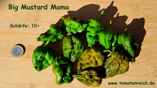 Die Chilis bleiben Grün und verfärben sich bei Reife leicht ins Gelbliche.